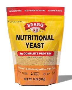Bragg Premium Nutritional Yeast Seasoning – how I get my B vitamins. I always feel better when I have a tablespoon or two, once or twice a week; sprinkle on baked or mashed potatoes, salads., cottage cheese. Vegans love to use it to make ‘cheese’ sauce. 🙂